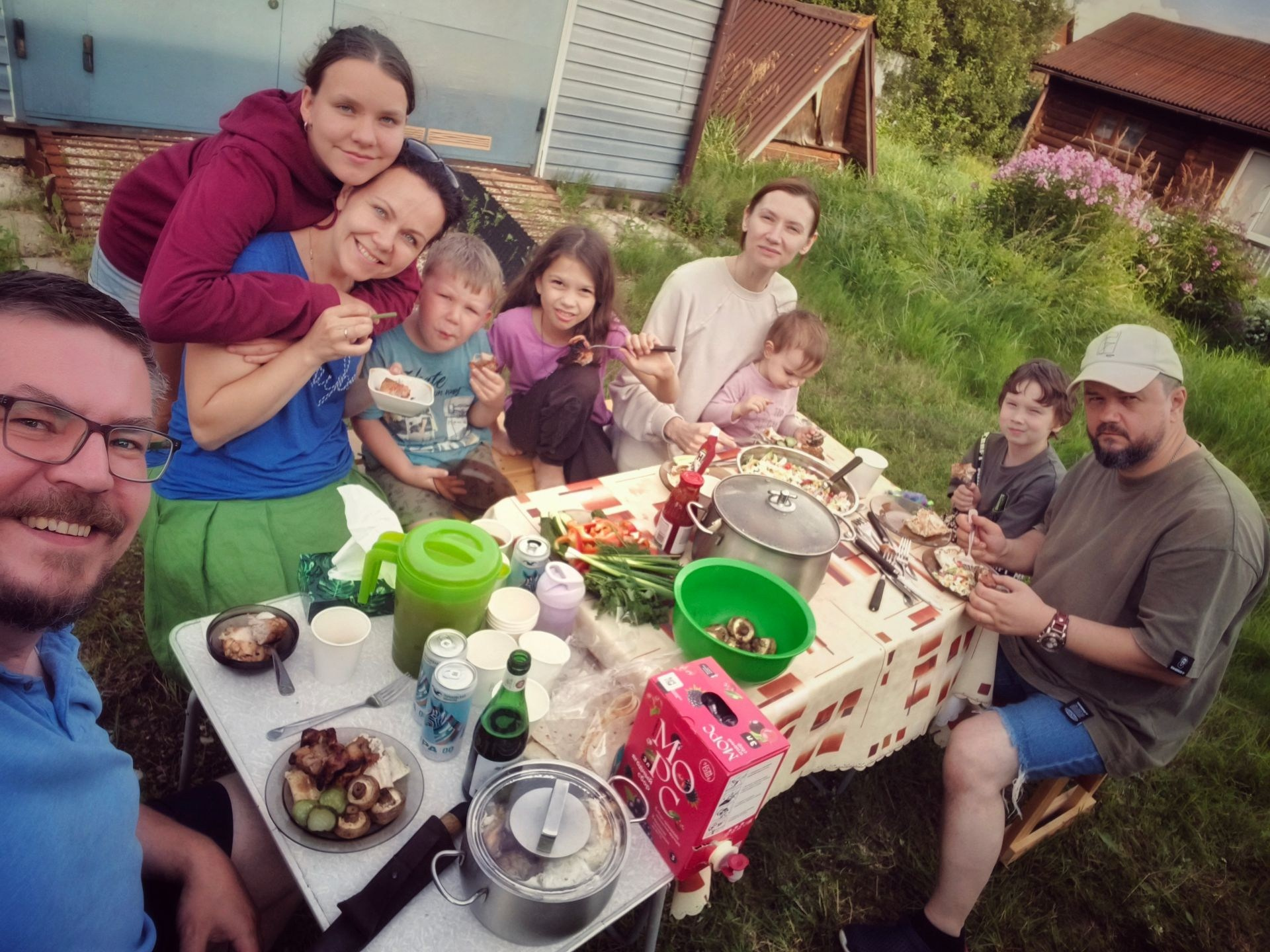 В один из таких дней к нам приехали друзья с детьми. Мы разожгли костёр, жарили шашлыки и разговаривали. Было приятно просто быть рядом, общаться, делиться новостями, шутить и смеяться. Самовар, нагретый на дровах, создавал особую атмосферу. Чай из него был невероятно вкусным, а дружеские посиделки стали ещё более тёплыми и душевными.